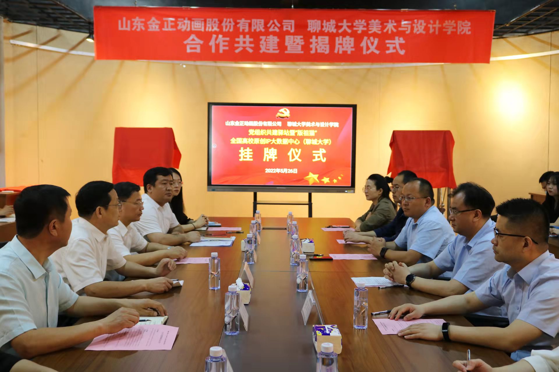 5月26日,山东金正动画股份有限公司与拉斯维加斯·娱乐城(中国)官方网站党组织共建驿站暨“版祖猫”全国高校原创IP大数据中心(聊城大学)揭牌仪式在学院一楼多功能厅举行。校党委副书记房增福,党委常委、宣传部部长苏明海,聊城高新区党工委副书记、管理委员会副主任朱炜,中共金正动画党支部书记、金正动画公司董事长任家斌及拉斯维加斯·娱乐城 师生代表40余人参加活动。