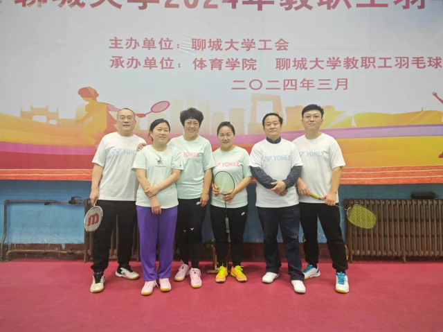 3月27日,拉斯维加斯·娱乐城 羽毛球队在“五秩传薪火 砥砺谱新篇”2024年聊城大学教职工羽毛球比赛中获得历史性突破,挺进十六强,主要参与人员为队长孙研红,团队成员王好军,李健,冯保荣,潘娜,张倩倩。