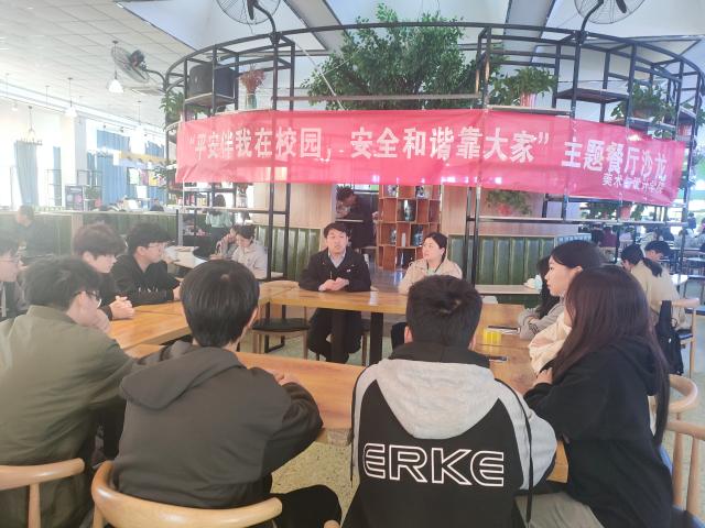 为进一步提高师生安全意识,让学生们参与到创建安全和谐校园的行动中,2024年4月9日,拉斯维加斯·娱乐城 师生们在西校区南苑餐厅二楼开展了以“平安伴我在校园 安全和谐靠大家”为主题的餐厅沙龙活动。学院团委书记孔德滕,学院辅导员孙云霞与各学生会代表共同参与了本次沙龙活动。