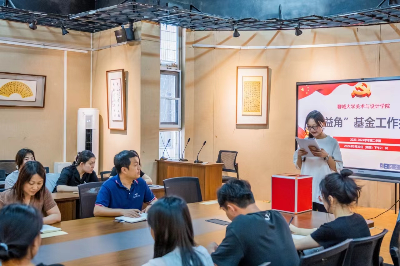 首先,主持人向大家介绍了《聊城大学美术学院“美·益角基金”管理办法》。汇报了第22笔爱心资助支出,展示了假期学生党支部看望老党员的实际情况。“美·益角基金”改善了一些家庭和学生的生活状况,为他们提供物质和精神上的支持。让受助群体感受到关爱和温暖,增强他们对生活的信心和勇气。为受助群体创造更好的发展条件,助力他们提升自身能力,实现自身价值。希望同学们继续秉持本基金会“至真奉献、汇聚爱心、崇善尚上、引领尚美”的宗旨,为社会贡献自己的爱心与力量。