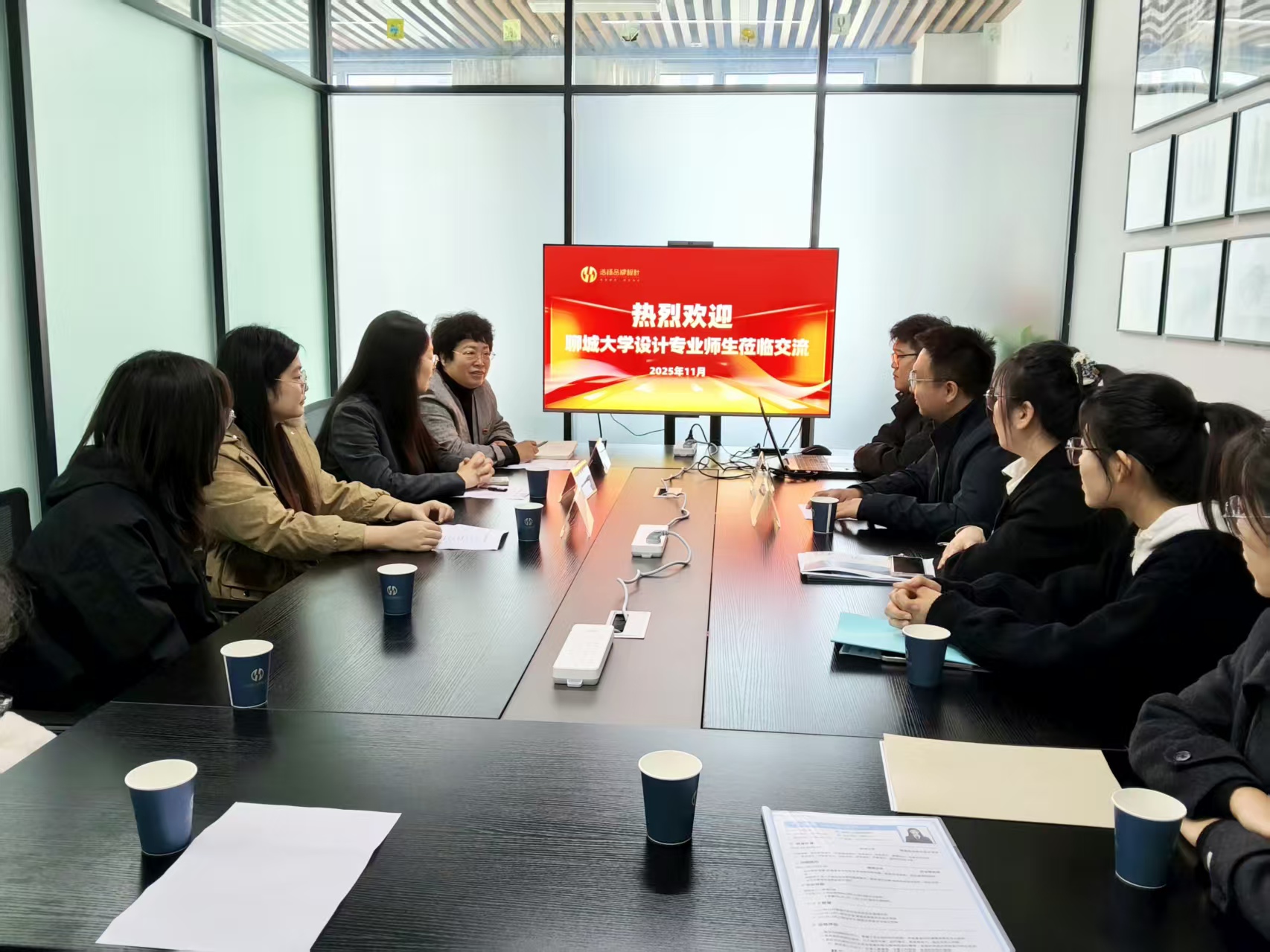 交流中,史秀娜详细介绍了学院发展概况及视觉传达设计专业的建设特色,围绕人才培养方案、课程体系设置、实践教学安排等核心内容进行了系统解读,着重阐述了学院在培养复合型设计人才方面的优势与成果。孙研红则聚焦毕业生就业情况,从生源结构、专业能力、就业意向等方面展开介绍,为企业精准选拔人才提供了参考。