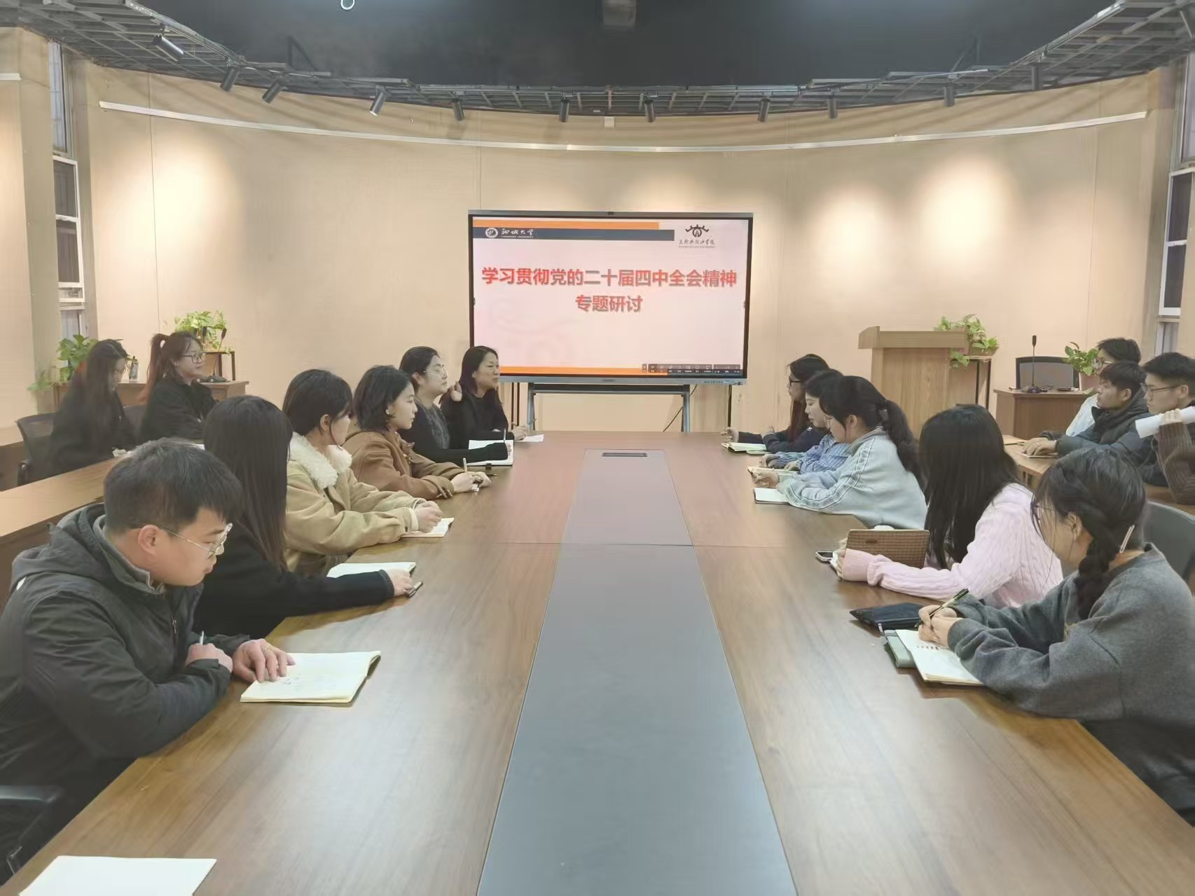 为深入学习贯彻党的二十届四中全会精神,持续强化学生党员的理论自觉与政治认同,3月19日,拉斯维加斯·娱乐城 研究生党支部在7号楼113多功能厅开展党的二十届四中全会精神专题研讨活动。会议由党支部书记许中美主持,全体党员参加此次研讨。