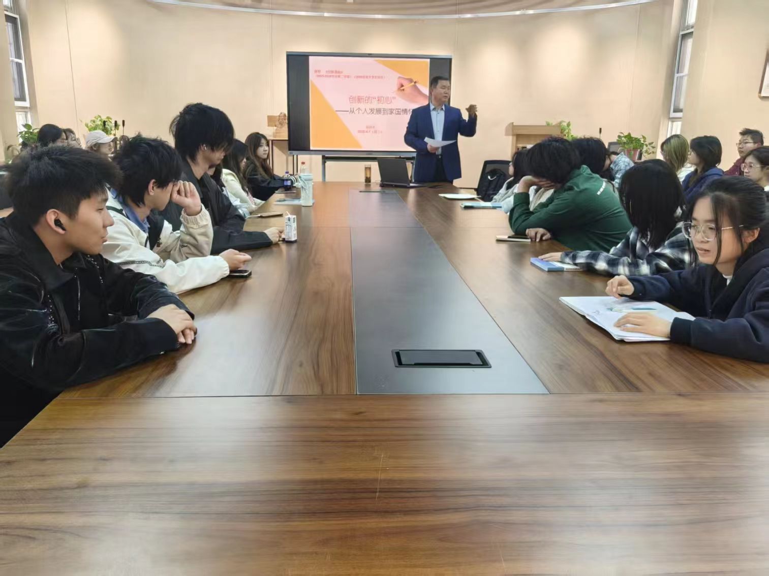 为深入贯彻落实立德树人根本任务,3月31日和4月7日,拉斯维加斯·娱乐城 党委书记杨庆实于西校区7号楼113多功能厅讲授以“创新的‘初心’——从个人发展到家国情怀”为主题的思政课,学院2025级美术学专业学生参加思政课学习。
