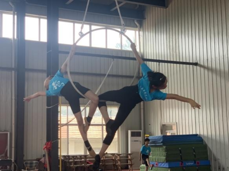 杂技学员在练功