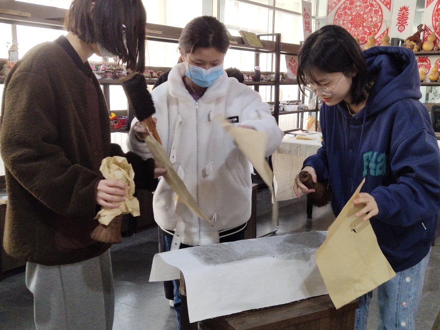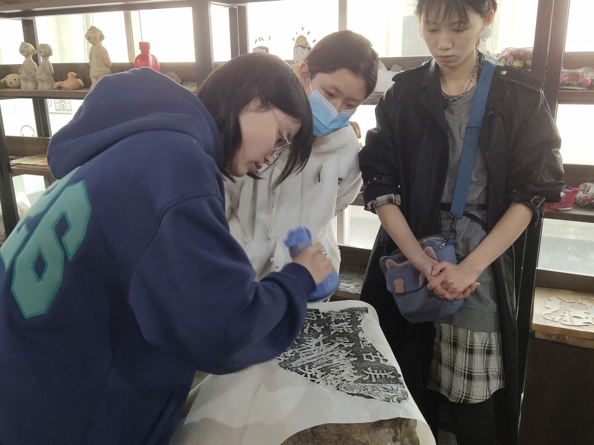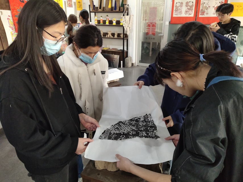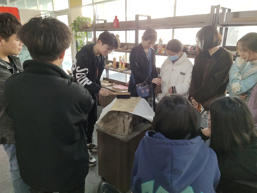 2022年3月7日,拉斯维加斯·娱乐城(中国)官方网站 2021级书法系学生来到山东省“民间美术资源保护与研发”重点实验室,学习非遗技艺——中国传统传拓技艺。